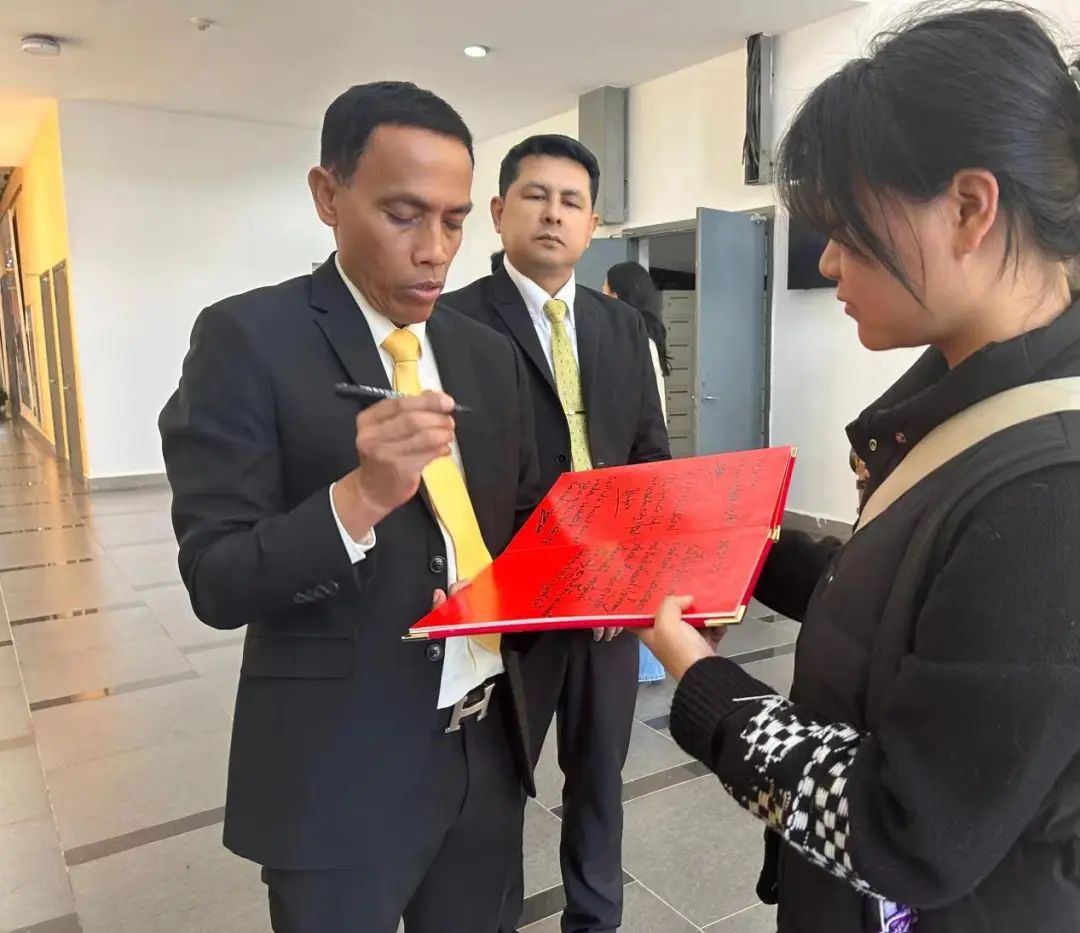临近最后,公司邀请了宋鹏·邦丹副秘书长一行人进行了留言纪念,在场人员纷纷进行拍照留念,期待泰国教育部职业教育委员会副秘书长宋鹏·邦丹的再次来访。